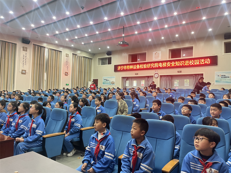 为普及电梯安全使用常识,科普电梯使用规范,增强乘客乘梯安全,4月4日下午,我院电梯专班赴济宁学院附属小学科苑校区,开展电梯安全知识进校园活动,为该校师生讲解电梯乘坐安全常识,五年级300余名同学参加了此次活动。
