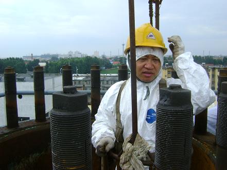 该公司是金乡县重点化工企业,主要产品是尿素和复合肥。该单位的一台铜洗塔已到定检周期,需要进行检验,检验任务十分紧迫。为及早完成检验任务同时确保检验质量,济宁分院容检中心抽调精兵强将参与检验。7月23日,天气又闷又热,检验人员冒着℃的高温,爬上℃,加上塔内无通风口,塔内下部检验环境温度高达℃。但是,检验人员不惧环境艰苦,身着闷热的工作服,随着吊笼的升降,逐筒节对铜洗塔的内壁和纵环焊缝进行测厚、磁粉、超声波探伤,发现环焊缝表面裂纹3处,对存在的问题,检验人员及时通知受检单位进行了处理,直至复检合格。检验人员认真负责的工作态度和严谨的工作作风赢得了该单位的高度赞扬。