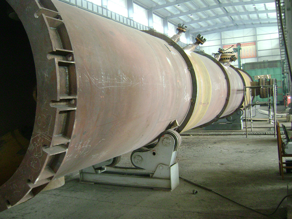 该设备结构复杂,采用Q345R、不锈钢复合钢板,直径2000mm,高度14000mm,是化机厂第一次制造此种大型容器。为了配合监检人员检查焊缝质量及复合钢板复合情况,同时也为了进一步熟练掌握声发射仪器的操作方法,容检中心对该台设备进行了声发射检验。