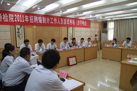 根据省院2011年编制外聘用人员招聘工作的统一部署,由济宁分院牵头组织,顺利完成了济宁考区的面试工作。面试于2011年8月30日在长城宾馆举行,主要负责济宁分院、枣庄分院的面试工作。