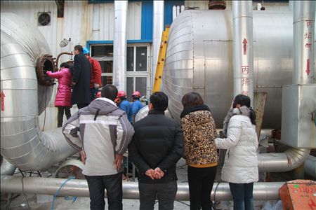 检验现场在室外,当天气温低至零下6度,赶赴现场的人员仅参观学习半个小时就冻的瑟瑟发抖,深感奋战于检验一线同事们工作之艰辛。面对着上百米高的脱硫塔群,看到同事们爬上爬下,深深的感到敬佩。通过检验现场工作人员的介绍,参观体验人员了解到特检工作的检验程序、检验范围及检验工作中的注意事项。