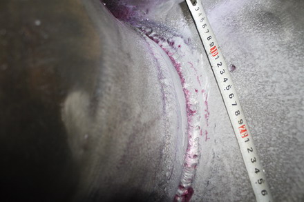 从1月4日到1月10日短短一周的时间里,检测人员不畏瑟瑟寒风、忍受刺骨冰凉磁悬液三九冬日侵袭,弓背弯腰在高高脚手架中穿梭。在检验高度86m再吸收塔期间,当天不仅降温到零下6℃且大雾弥漫能见度极低,为了企业早一天的恢复生产,8位检测人员在86m高塔间穿梭,不畏严寒,艰苦奋战,检测声、对讲机声、嗖嗖风声相伴传到地面,这声音令在场的每一位感到震撼、感动。一层一层又一层,从顶端到低端20余层,一个都不能丢,一个都不能漏,一点都不能放过,从早晨8点到下午2点连续6个小时奋战掩饰不住结束时发自内心的喜悦,检测中发现一条20mm的重要隐患裂纹令企业对我们感激万分。