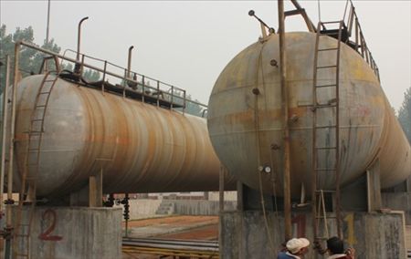 2012年06月13日,容器检验中心的4位同志,冒着40多度的高温为顺佳经贸液化气站的两台125m³液化石油气储罐进行了全面检验,这两台设备为本地区最大的液化石油气罐,直径达3600 mm,需要在设备内部搭设脚手架方能够到顶部焊缝,检验现场温度高、设备检验难度大。