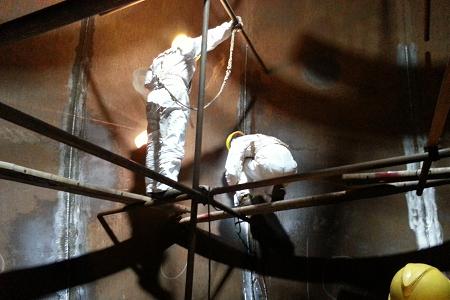 检验人员到达检验现场后,分工协作,对设备进行宏观检查、壁厚测定和无损检测,从上午9点一直进行到下午1点多。尽管当天济宁市的最高气温仅有28℃,但由于检验工作劳动强度大,时间长,到检验结束的时候,每名检验人员的衣服都被汗水湿透了。