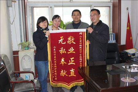 2013年2月1日,山东蓝天恒基锅炉有限公司将写有“敬业正道无私奉献”的锦旗送到山东省特检院济宁分院,感谢分院锅炉监检中心对该企业的大力支持和优质服务,锅炉监检中心的高效、优质服务得到服务单位的肯定和赞誉。