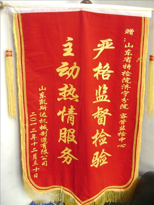 2013年2月1日,山东凯斯达机械制造有限公司以及山东济宁蓝天恒基锅炉有限公司领导先后来到济宁分院,为容管监检中心赠送锦旗,代表特种设备生产单位表达对分院产品监检工作的肯定与感谢。