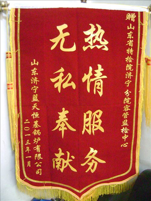 山东济宁蓝天恒基锅炉有限公司赠送锦旗