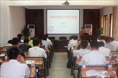 此次培训由厦门大学马克思主义学院组织,主要学习了创新思维与科学决策、事业单位改革解读与趋势、周易与人生智慧、压力管理与阳光心态、政策执行力提升、语言艺术与谈判谋略等课程。课堂上,教授们精彩的授课深深的吸引了学员,不时发出阵阵掌声。