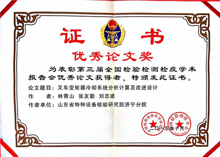 2015年10月27日,第三届全国检验检测检疫学术报告会在北京召开,来自全国的政府主管部门、出入境系统、质监系统、高校、科研院所、仪器设备厂商、检测机构及部分科研人员等四百余专业人士参加了会议。国家质检总局副局长张沁荣、国家质检总局科技司司长武津生、中国检科院院长李新实等相关领导出席并讲话。我院林青山、张友勤、刘志建三位同志撰写的论文《叉车变矩器冷却系统分析计算及改进设计》到了学术委员会专家们的广泛认可,荣获本届大会“优秀论文奖”,并亲临现场,参与研讨。