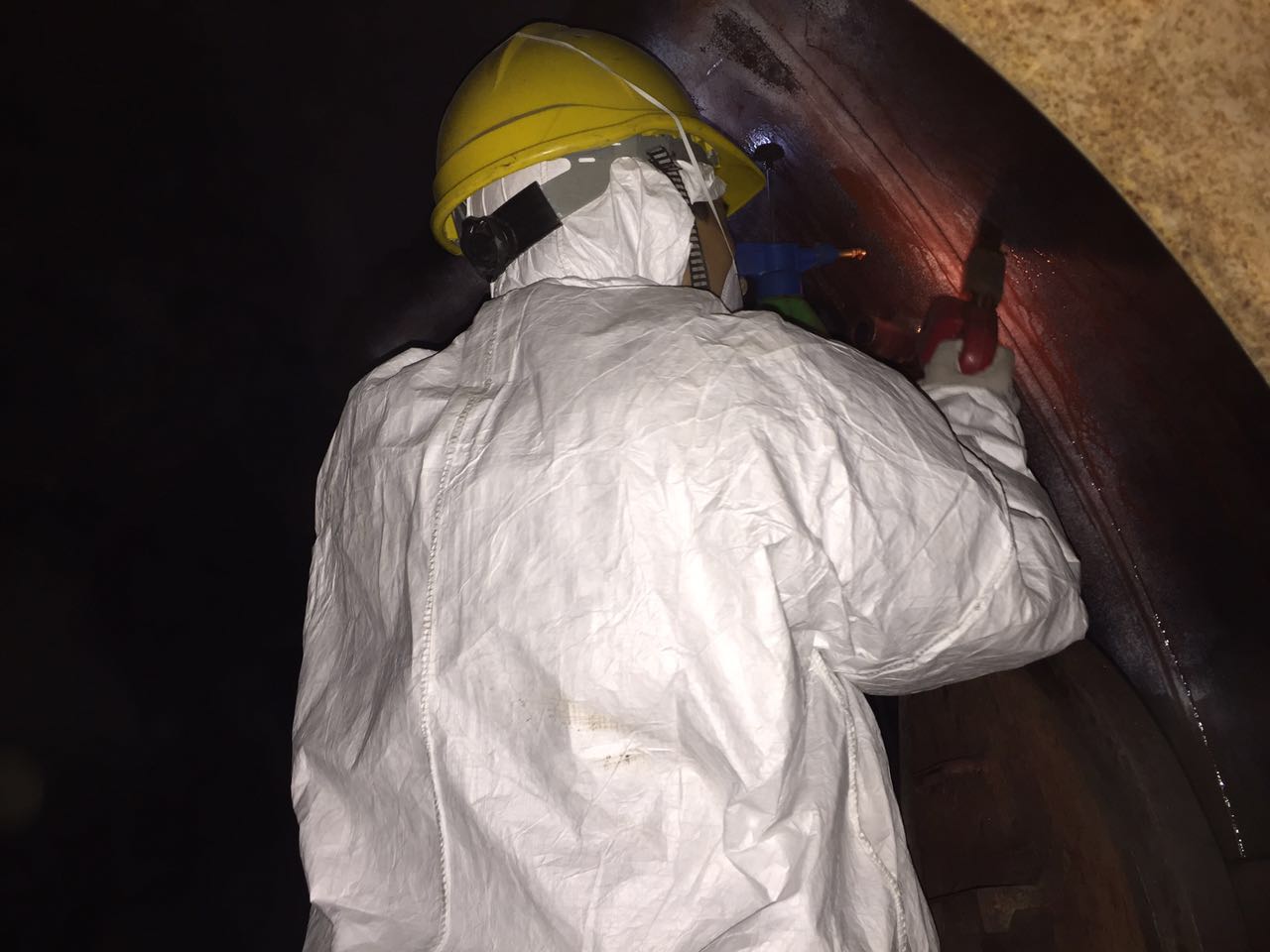 同志们全副武装克服种种困难,进入密闭狭窄的烟道内,认真细致地检验。由于雨天积水,锅炉内外冰块堆积。检验人员克服现场的恶劣环境,一丝不苟地完成了全部检验工作。
