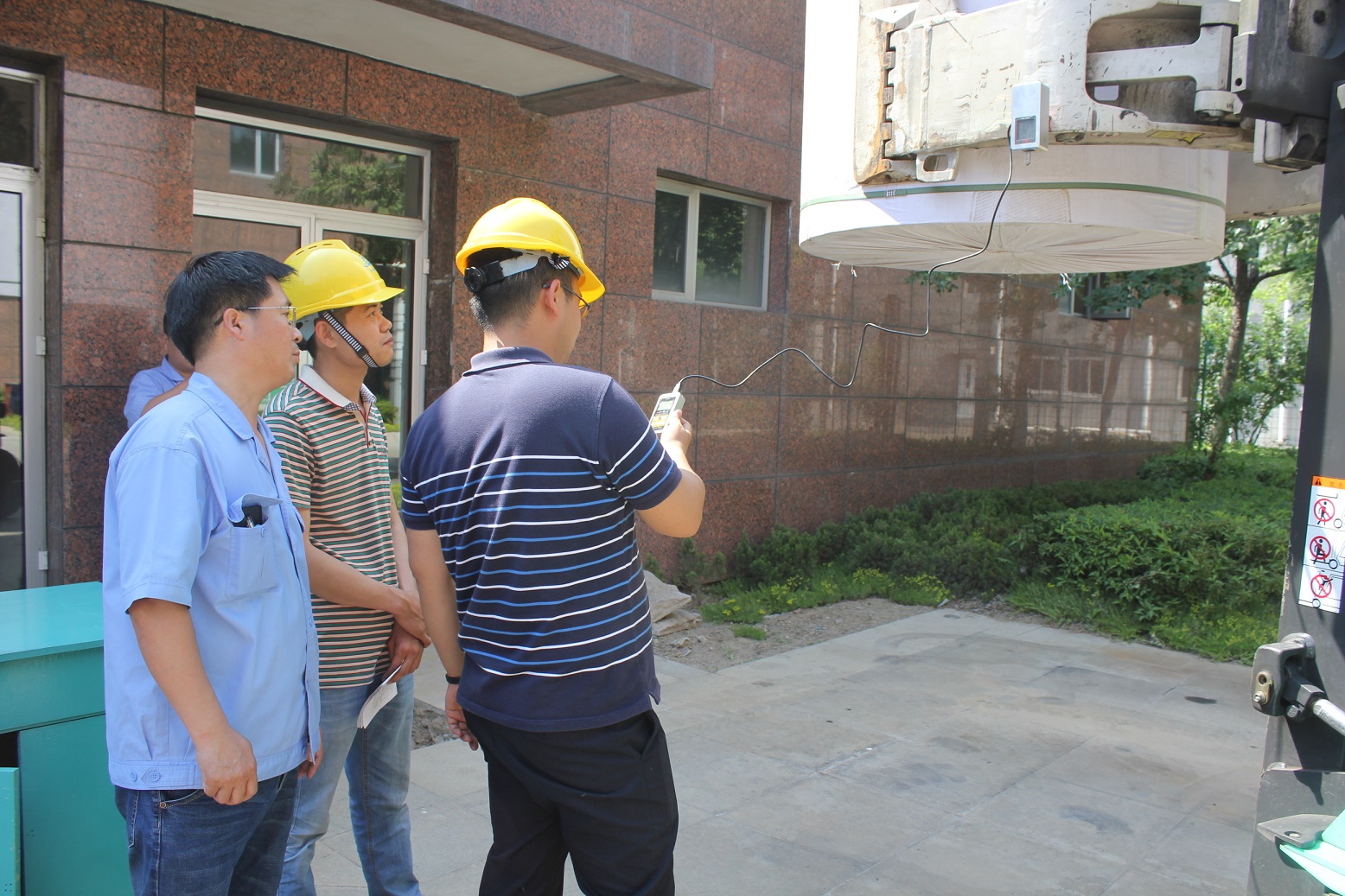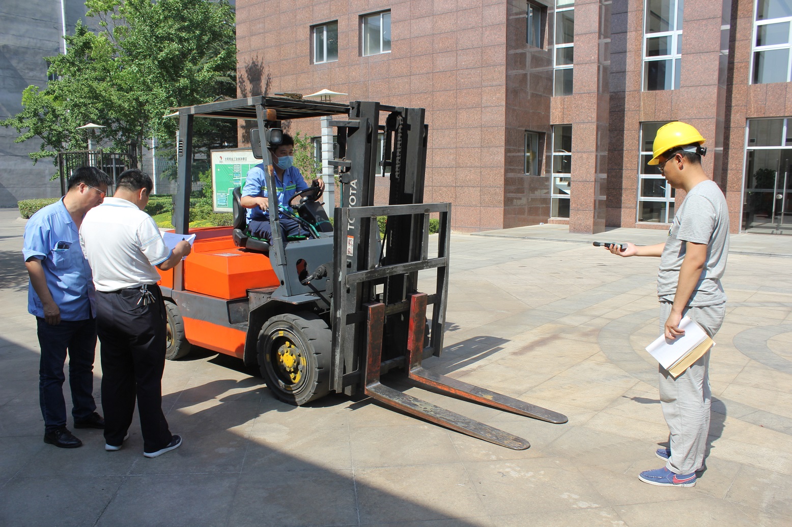 为缩短停工时间,配合企业生产,在不降低检验质量的前提下,起重一部在前期开展了针对性的调研、分析,制定了合理周密的检验方案。在检验现场与企业管理人员合理安排、精心组织,采用分组、分模块的流水线检验程序,检验员们冒高温顶酷暑不喊热不叫累,利用我院新购置的叉车货叉自然下滑和门架倾角变化量激光测量仪科学准确施检,创造性地实现了厂内机动车辆的在线流动检验,最大限度的降低了车辆检验等待时间,提高了工作效率与工作质量。