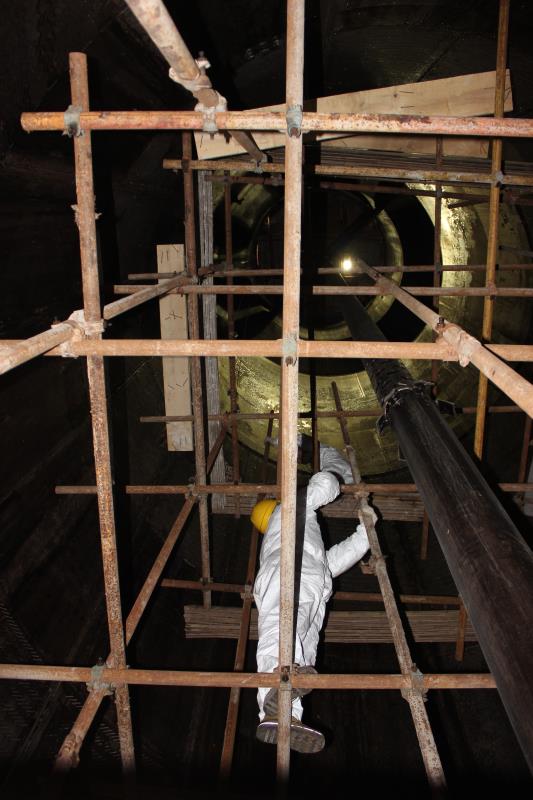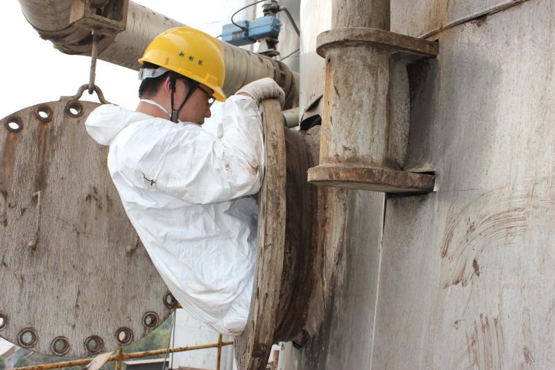 在高出地面近百米的某化工装置塔顶,临时搭起的简易升降台在风中左右摇曳,一位身着白色连体工装的年轻人腰捆着钢索,手端着数公斤重的检测设备,在摇晃之中顺着塔体内壁慢慢坠向塔底,漆黑的塔筒仿佛像一个无底深渊,微弱的安全顶灯里飘荡着浮尘,闷热的塔体内气味几乎令人窒息......