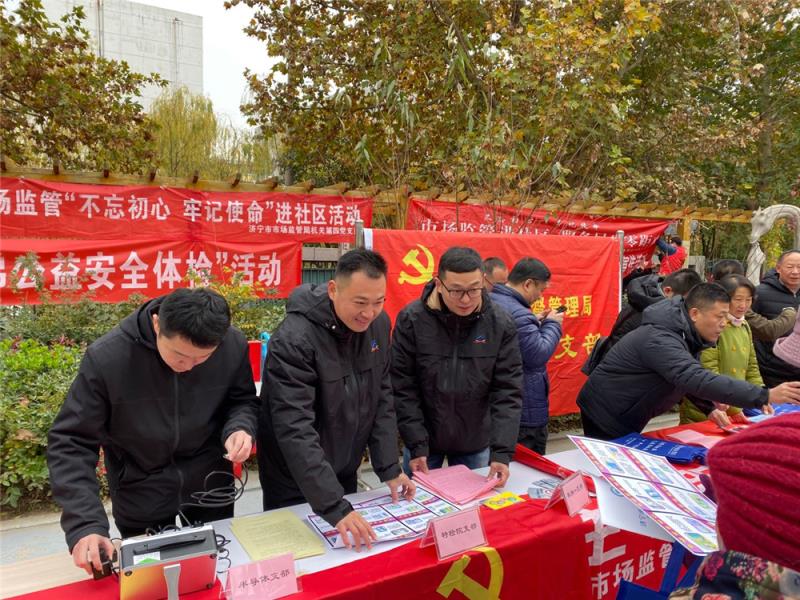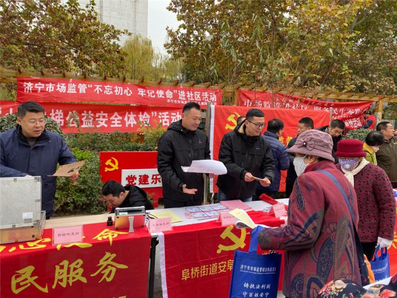 11月29日,济宁分院电梯中心乔旗、强国栋同志参加济宁市市场监管局组织的“走进社区、服务民生“公益宣传活动,此次活动是“不忘初心、牢记使命”主题教育系列活动的一部分。