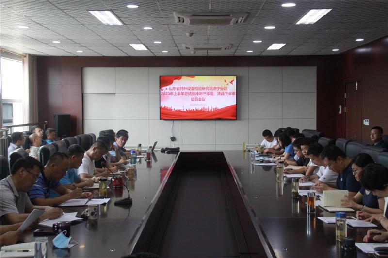 2020年8月3日上午,山东省特检院济宁分院召开上半年总结暨冲刺三季度、决战下半年动员会议,总结上半年工作,对冲刺三季度、决战下半年做出安排部署。申德峰副院长主持会议,分院班子成员及中层以上干部参会。