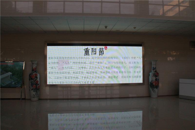 同时,通过大厅屏幕滚动播放重阳节节日科普,多角度宣传介绍重阳节习俗知识,营造喜气祥和的节日氛围。