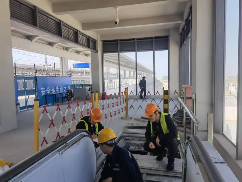 由于时间紧、任务重,为了高效完成此次曲阜南站电梯检验任务,董哲副院长要求检验人员要以高度负责的态度开展检验工作,主动作为,靠前服务,积极为建设和施工单位提供技术支持,帮助解决现场施工的技术难题,全力保障鲁南高铁按期顺利投用。