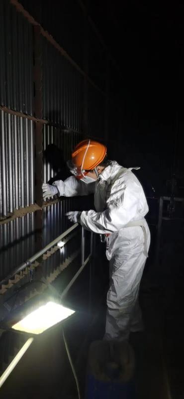 夏季高温,特种设备运行易发生故障,这无形中加大了检验人员的责任与压力。穿着密不透风的隔离服,厚重的检验鞋,佩戴安全帽,即使是在室内都闷热不已,在热浪席卷的酷暑,顶着炎炎烈日,操作笨重的检验设备实施检验,对每一位检验人员来说更是极大的挑战。面对恶劣的检验环境,检验员没有退缩,没有抱怨,凭借高度的责任心,发扬拼搏和奉献的特检精神,一次一次高质量的完成检验任务,用责任和担当诠释了特检卫士的初心和本色。