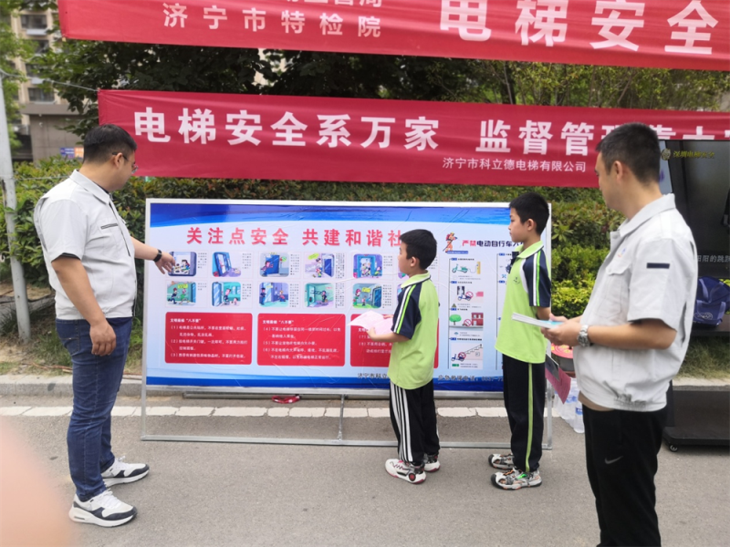 6月16日,济宁市特种设备检验研究院联合汶上县市场监督管理局,来到汶上县东方名都小区开展“电梯安全进社区”和电梯困人应急救援演练活动。活动中,我院电梯二部组织技术人员开展了电梯安全知识宣传活动,向居民发放电梯安全知识宣传单,并对社区部分电梯进行安全大检查。袁健副主任带领部分技术人员参加了本次活动。