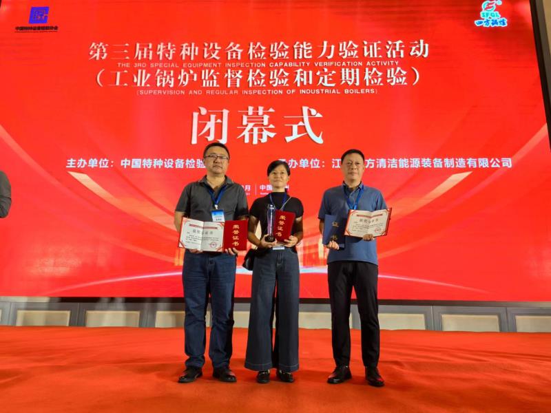我院高度重视此次检验能力验证活动,锅炉检验专班针对此次活动凝心聚力、认真筹备,选派曹颖同志为领队,赵强、谭兆强两名同志为选手参加了本次活动。通过报告比对、理论笔试、资料审核以及现场检验四个环节的挑战,我院参赛队员以严谨的工作态度、扎实的专业知识、精湛的检验技能和优秀的团队协作精神,赢得了裁判和参赛队伍的一致好评和认可,最终获得工业锅炉定期检验一等奖。
