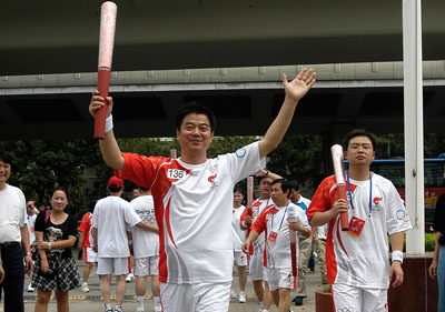 国家质检总局火炬手在天津参加奥运圣火传递