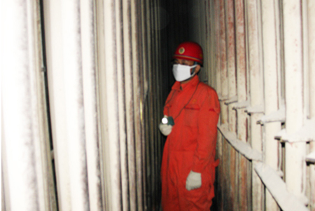 国电费县电厂1号锅炉定期检验是该锅炉自2007年运行后,首次进行的内部检验。目的是通过检验,发现锅炉设计和安装工作的缺陷、运行管理的不足之处、整套系统的安全隐患,保障锅炉的安全、经济、平稳运行。其检验技术含量高、工作难度大,检验时间短,为保证检验工作质量、按期完成检验任务,省特检院抽调济宁分院锅炉检验中心锅炉检验师杨国栋同志一起参加检验工作。通过检验,发现了过热器、再热器严重变形、防磨瓦脱落、燃烧器损坏等问题,并提出处理意见和建议。特检人员严谨务实的工作作风、精湛的技术水平得到了电厂的高度评价。