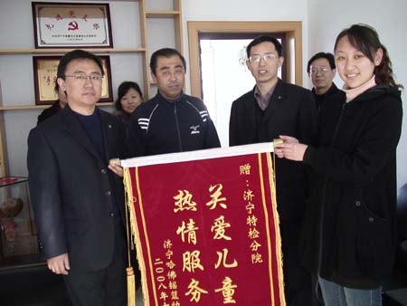 十二月二日,山东省特种设备检验研究院济宁分院又迎来了一批特殊的客人——济宁哈佛摇篮幼儿园的职工代表,他们代表幼儿园的的孩子们将一面“关爱儿童,热情服务”的锦旗送到济宁分院,以表达对济宁分院的感谢,这不仅体现了济宁分院服务社会、关注民生、为安全生产保驾护航的宗旨,而且也正是济宁特检人真实工作的写照。