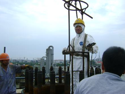 该公司是金乡县重点化工企业,主要产品是尿素和复合肥。该单位的一台铜洗塔已到定检周期,需要进行检验,检验任务十分紧迫。为及早完成检验任务同时确保检验质量,济宁分院容检中心抽调精兵强将参与检验。7月23日,天气又闷又热,检验人员冒着℃的高温,爬上℃,加上塔内无通风口,塔内下部检验环境温度高达℃。但是,检验人员不惧环境艰苦,身着闷热的工作服,随着吊笼的升降,逐筒节对铜洗塔的内壁和纵环焊缝进行测厚、磁粉、超声波探伤,发现环焊缝表面裂纹3处,对存在的问题,检验人员及时通知受检单位进行了处理,直至复检合格。检验人员认真负责的工作态度和严谨的工作作风赢得了该单位的高度赞扬。