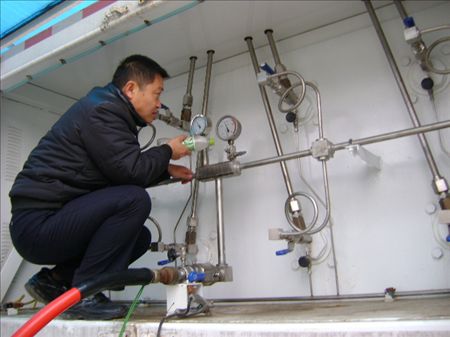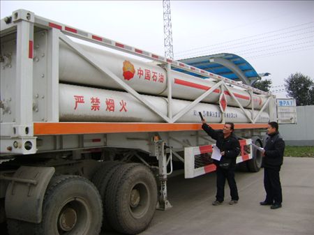 2011年12月31日下午我院容器检验室对中石油昆仑天然气利用有限公司聊城分公司委托的两辆高压气体长管半挂车进行了年度检验,我院接到报检申请后,院领导高度重视,与聊城分院进行了沟通,并安排具有检验丰富的检验师负责检验,首先学习了质保体系文件中《长管拖车定期检验实施细则》,按照细则的要求对设备资料进行审查,气瓶外观检查,附件检查,安全附件的检查,气瓶固定装置检查,导静电装置检查,气密性试验检查等项目。该检验不仅填补了我院对长管拖车检验工作的空白,而且为企业提供了方便服务,保证了设备的安全运行,为我院赢得了较高的社会信誉。