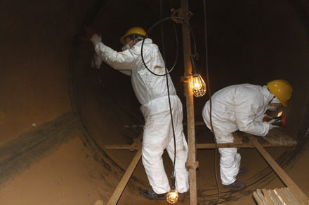从1月4日到1月10日短短一周的时间里,检测人员不畏瑟瑟寒风、忍受刺骨冰凉磁悬液三九冬日侵袭,弓背弯腰在高高脚手架中穿梭。在检验高度86m再吸收塔期间,当天不仅降温到零下6℃且大雾弥漫能见度极低,为了企业早一天的恢复生产,8位检测人员在86m高塔间穿梭,不畏严寒,艰苦奋战,检测声、对讲机声、嗖嗖风声相伴传到地面,这声音令在场的每一位感到震撼、感动。一层一层又一层,从顶端到低端20余层,一个都不能丢,一个都不能漏,一点都不能放过,从早晨8点到下午2点连续6个小时奋战掩饰不住结束时发自内心的喜悦,检测中发现一条20mm的重要隐患裂纹令企业对我们感激万分。