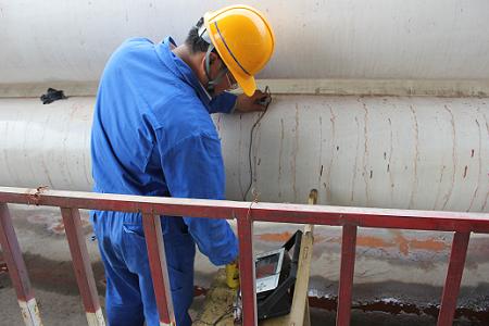 这是我院首次对站用储气瓶组进行检验,接到济宁龙凯天然气投资有限公司对所属加气站的站用储气瓶组的报检后,我院积极与中国特种设备检验检测研究院进行了联系。中国特检验派来了检验人员,并开来了长管拖车移动检测车对该瓶组进行检验。在制定完检验方案后,我院检验人员与国家院检验人员分工对该瓶组进行了外观检查、壁厚测定、渗透检测、磁粉检测、超声导波检测、声发射检测,顺利完成了该瓶组的检验。经过此次检验,我院检验人员积累了检验经验,为下一步独立开展站用储气瓶组检验打下了基础。