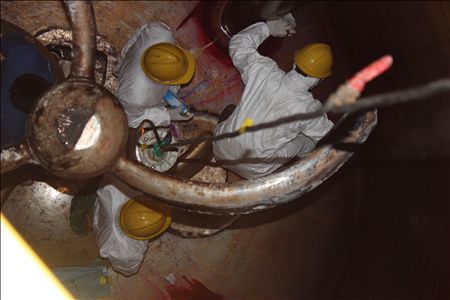 作为一家大型化工企业,设备停产检修一天就有上百万元的损失。接到报检任务后,容管定检中心的同志们在停车前就多次深入企业,现场指导检验准备工作。本次检验时值寒冬,被检设备多为聚合釜、液氯储槽等,且结构复杂,检验难度大,检验工期短,工作量大,容管定检中心的同志们克服重重困难,集中对该公司报检的特种设备实施集团式检验会战,充分发挥每个检验人员的技术优势,发扬特检“精、细、严、实”的工作作风,保证在最短的时间内高质量的完成检验工作。