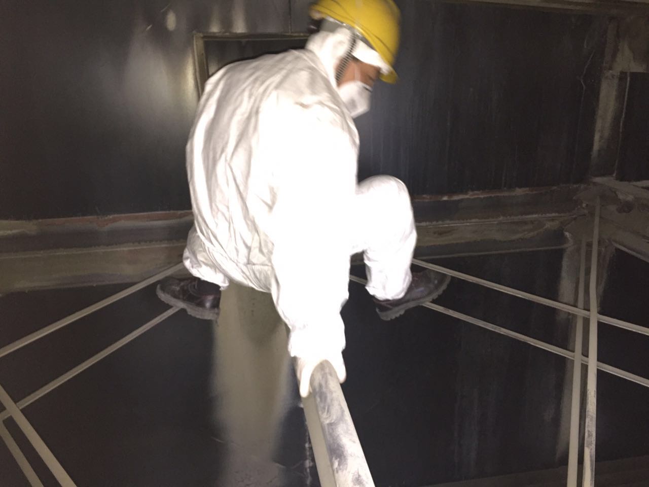 同志们全副武装克服种种困难,进入密闭狭窄的烟道内,认真细致地检验。由于雨天积水,锅炉内外冰块堆积。检验人员克服现场的恶劣环境,一丝不苟地完成了全部检验工作。