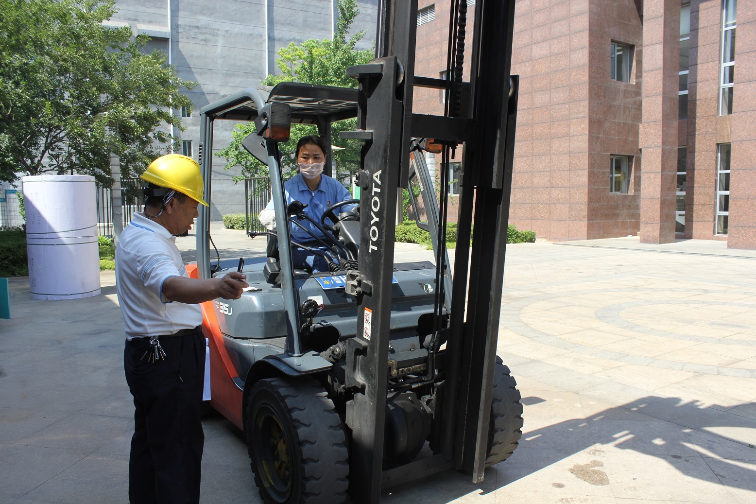 为缩短停工时间,配合企业生产,在不降低检验质量的前提下,起重一部在前期开展了针对性的调研、分析,制定了合理周密的检验方案。在检验现场与企业管理人员合理安排、精心组织,采用分组、分模块的流水线检验程序,检验员们冒高温顶酷暑不喊热不叫累,利用我院新购置的叉车货叉自然下滑和门架倾角变化量激光测量仪科学准确施检,创造性地实现了厂内机动车辆的在线流动检验,最大限度的降低了车辆检验等待时间,提高了工作效率与工作质量。