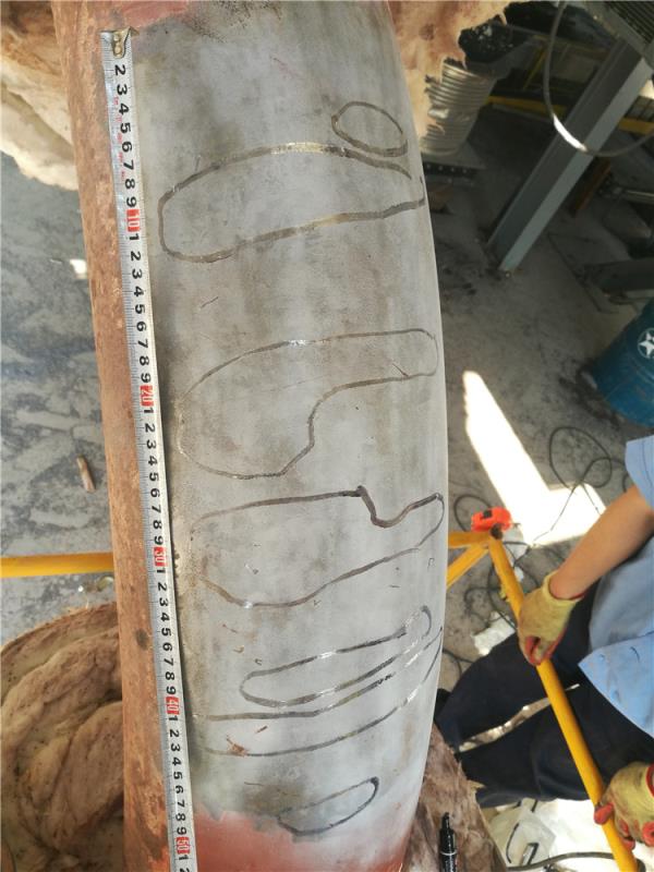 集中下降管内外部重大缺陷(长度约50mm裂纹)
