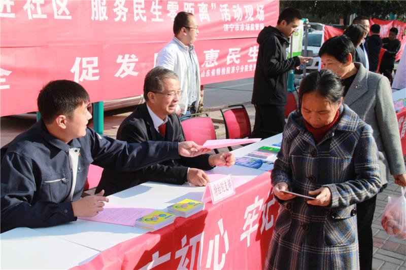 11月15日,为深入开展“不忘初心、牢记使命”主题教育活动,按照中共济宁市市场监管局机关党委统一部署,我院支部与局属其他13个支部共同在济宁广安家园小区开展 “市场监管进社区,服务民生零距离”活动。各支部结合工作实际和职责特点,向小区群众提供识假辩劣、检测检查、技术咨询、政策讲解等服务。