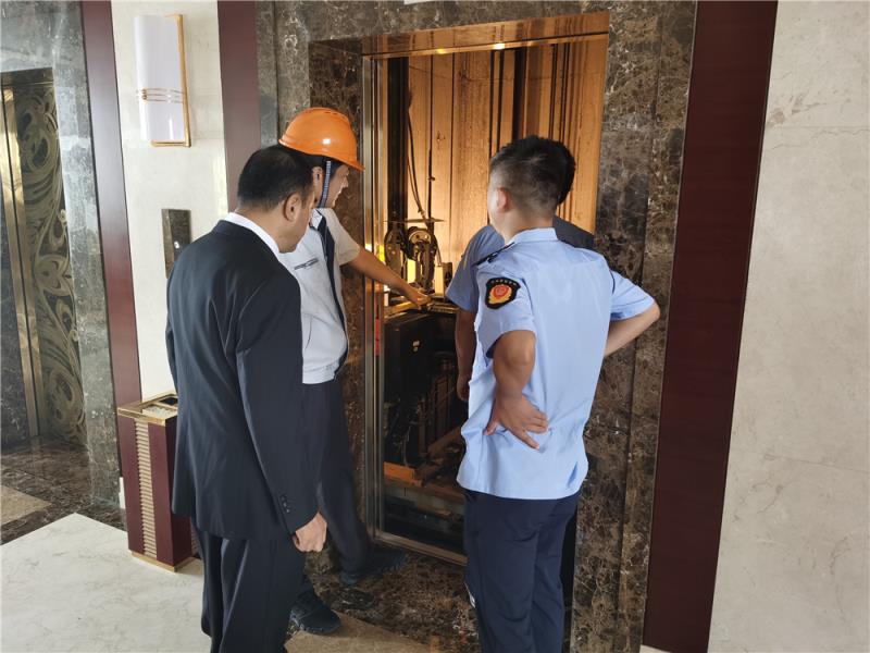 为保障市人代会期间电梯安全运行,2020年7月22日,我院电梯检验中心配合任城区、高新区、太白湖新区市场监督管理局,对市人代会会议场所、接待宾馆使用的电梯设备开展公益性检查活动。