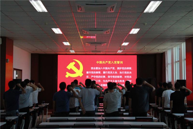随后,全体人员观看了警示教育片,全体在职党员在刘国柱书记的带领下重温了入党誓词。