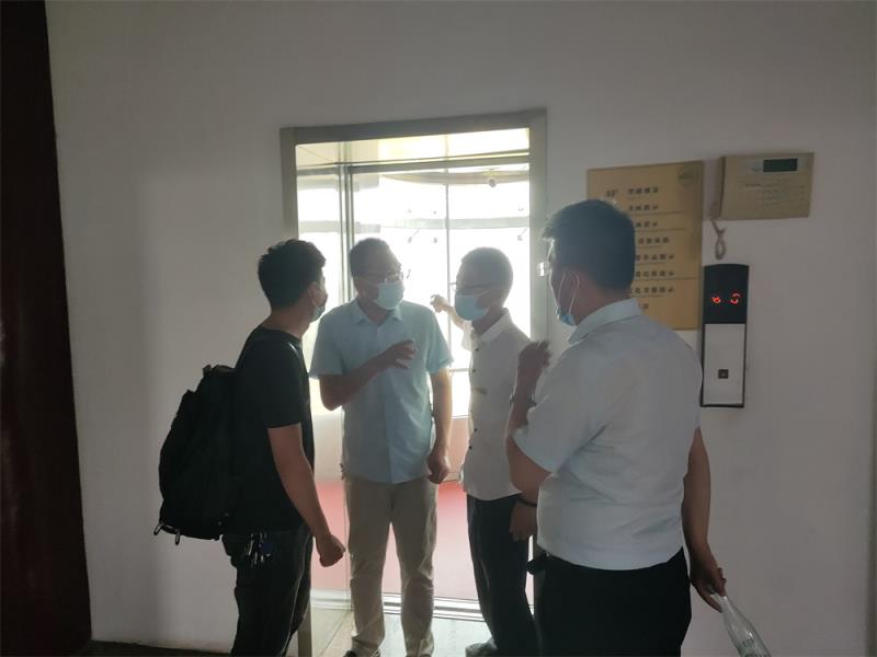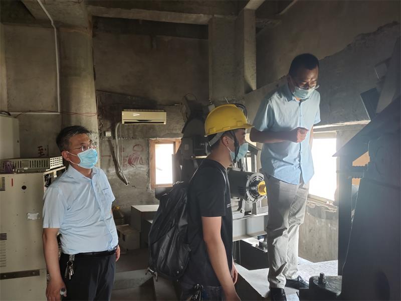 检验现场,检验人员对塔内两部电梯逐一查验,重点检查电梯轿厢内应急救援装置是否畅通,应急照明是否正常,光幕或安全触板是否有效,电梯轿厢内选层按键是否完好,开关门是否顺畅无卡阻现象,乘坐电梯查看运行是否平稳,是否有异常声音,曳引机运行是否有异响等等;检验结束后,针对该塔内的两部电梯存在的问题,我电梯院检验人员详细进行了分析讲解,提出了合理性的建议。