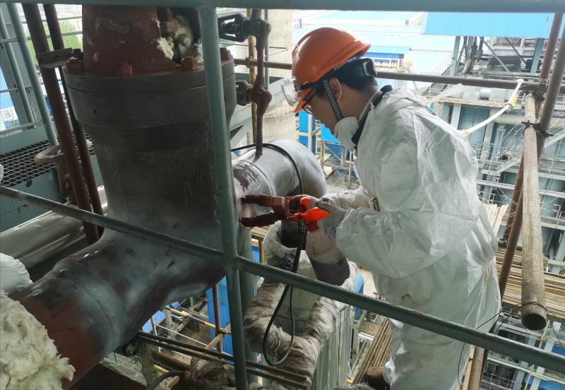 夏季高温,特种设备运行易发生故障,这无形中加大了检验人员的责任与压力。穿着密不透风的隔离服,厚重的检验鞋,佩戴安全帽,即使是在室内都闷热不已,在热浪席卷的酷暑,顶着炎炎烈日,操作笨重的检验设备实施检验,对每一位检验人员来说更是极大的挑战。面对恶劣的检验环境,检验员没有退缩,没有抱怨,凭借高度的责任心,发扬拼搏和奉献的特检精神,一次一次高质量的完成检验任务,用责任和担当诠释了特检卫士的初心和本色。