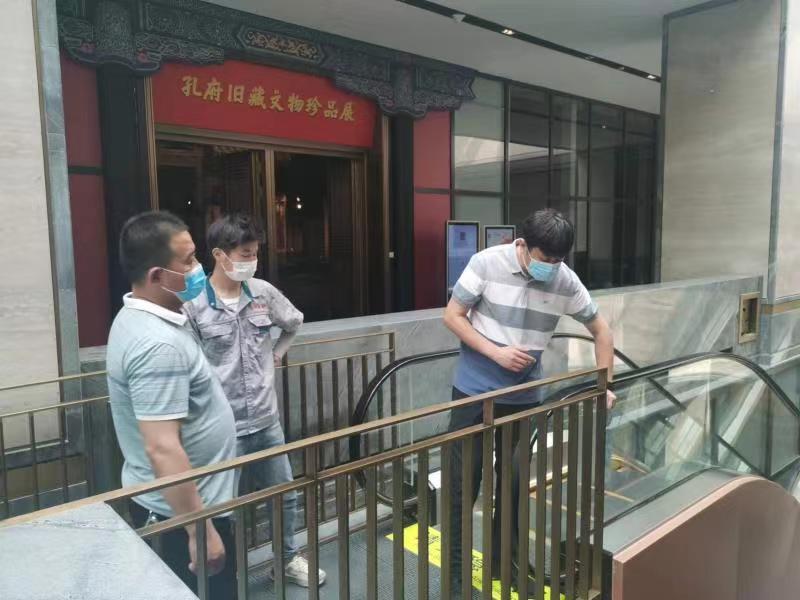 为保障活动场所及接待酒店的电梯安全运行,按照市委市政府和市局要求,我院高度重视,刘国柱院长对旅游发展大会电梯保障工作进行了安排部署,从5月份开始申德峰副院长带领电梯检验中心对涉及的会场、酒店共18家使用单位、137台电梯开展了全覆盖保障检验,指导使用单位和维保单位开展针对性的应急救援演练,并指派电梯一部孔亚楠同志参加市旅游发展大会活动筹备专班,从6月15日起到曲阜进行电梯驻点保障工作至大会结束。保障期间按照市专班要求对活动场所涉及的电梯开展了全覆盖安全检查、对发现的安全隐患及时督促整改、安排并督导维保人员24小时驻点保障和电梯巡查等工作,确保电梯运行安全。