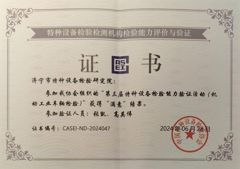 2024年6月25日至28日,全国第三届特种设备检验能力验证活动(场(厂)内专用机动车辆)在贵州省贵阳市举办,来自全国28个省份的141支队伍展开激烈精彩的角逐,最终我院在机动工业车辆检验项目中脱颖而出,荣获团体“二等奖”,并获得“满意”证书。