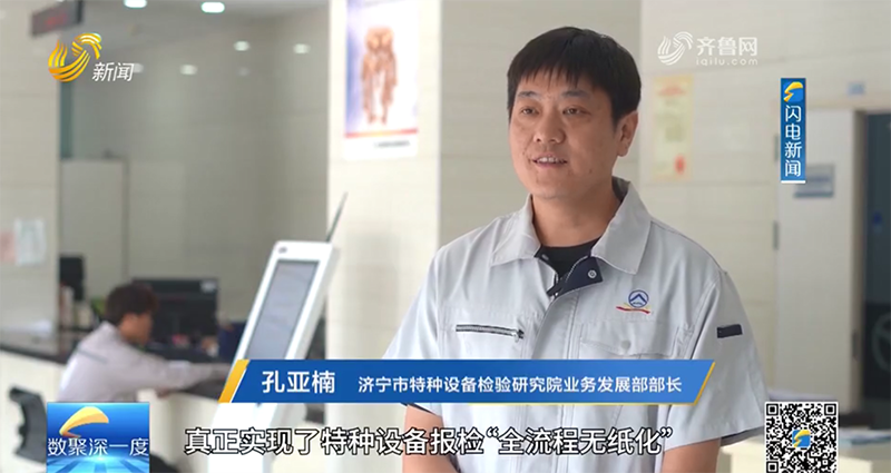 近日,济宁市特检院特种设备网上报检服务模式凭借显著的创新成效与便民价值,被济宁市大数据局作为“无证明城市建设”典型案例重点推荐,并被山东电视台新闻频道《数字强省》栏目专题报道。