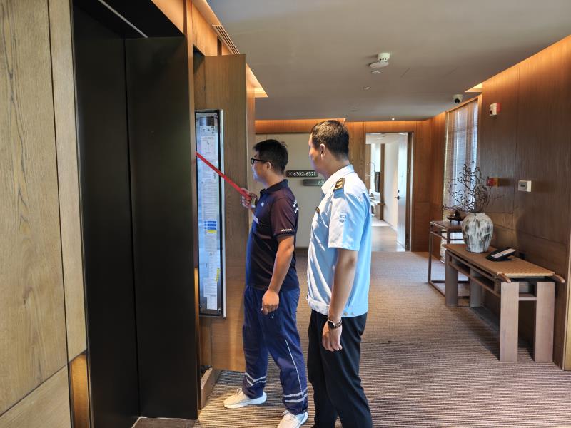 为确保论坛期间电梯安全运行,市局成立专项保障小组,制定《尼山论坛电梯安全保障方案》,提前一个月对主会场尼山圣境、尼山宾舍及周边涉及酒店电梯开展“全覆盖”检查。重点排查紧急报警装置、应急照明、应急救援等关键环节,累计检查电梯120余台,发现并督促整改隐患16项,为电梯安全运行奠定坚实基础。